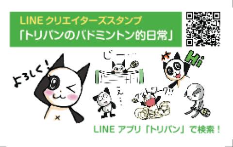 日本リーグで男女とも1部に所属するトリッキーパンダースのチームキャラクターがLINEスタンプになった。その名も『トリパンのバドミントン的日常』。