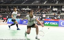 「しっかり足を動かして、石宇奇選手の上からのショットを取って、それが少しずつプレッシャーになっていた。今日は自分のディフェンスがよかったと思います」と桃田。大会中、貫き通した「守り」で手にした念願の頂点。世界の中心に、桃田が君臨した。
