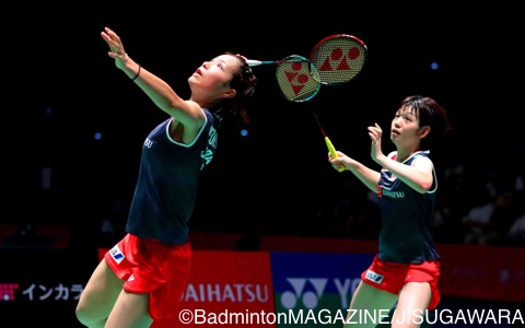 タイOPのときは、自分たちが守りに入ってしまう形が多く、相手を勢いづかせてしまった。今日はそうさせないことはもちろん、シャトルがあまり飛ばないので、しっかり我慢できれば自分たちのほうが有利だと思って試合に入りました。明日も2人らしく、今日みたいな長いラリーになっても、しっかり我慢しながらプレーしたいと思います」