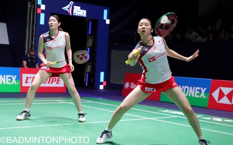 女子ダブルスは3ペアがベスト8入りを果たしていたが、勝ち上がったのは松本麻佑/永原和可那(写真右)。韓国のベテランペアをファイナル勝負の末に退けてベスト4入りを決めた。福万尚子/與猶くるみは韓国の李紹希/申昇瓚に、髙橋礼華/松友美佐紀はブルガリアの姉妹ペアに敗れて上位進出はならなかった。