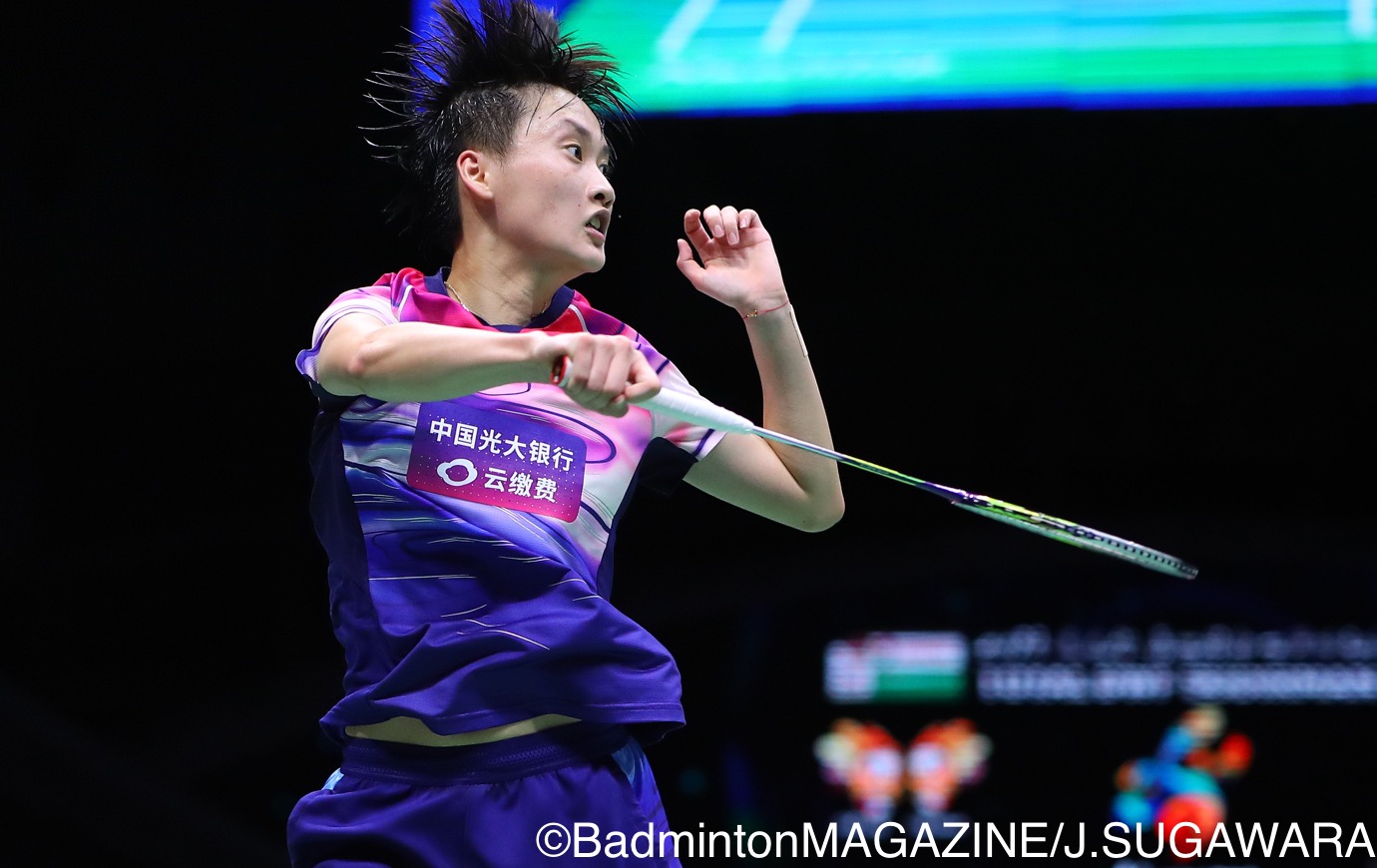 勢いを持続させたかった山口だったが、陳雨菲(写真)も中国2大会ぶりの頂点奪取を託されたメンバーの一人。気迫を込めたプレーで山口にプレッシャーをかけると、第2ゲームは陳雨菲が9−5とリード。一時は山口に逆転を許したが、再び点差を引き離して21-16で奪った。1−1でファイナルゲームに持ち込まれた山口は、この後もねばり強くラリーを繰り広げたが、地元Vまであと少しの陳雨菲も気持ちで押し込む。