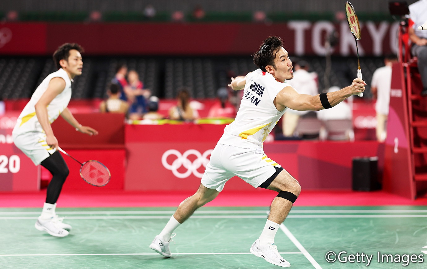 男子ダブルスの園田啓悟(写真・右)/嘉村健士、遠藤大由/渡辺勇大は、ともに準々決勝で敗退。ベスト8で東京オリンピックを終えた。