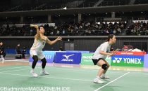混合ダブルスは、全英王者の渡辺勇大/東野有紗、金子祐樹(上写真・左)/松友美佐紀の2ペアが登場。渡辺/東野はインドネシアの若手ペアを26分で下し、金子/松友も侮れない香港ペアを31分のストレート勝利で退け初戦を突破している。明日27日は、男女シングルス、女子ダブルスの1回戦が行なわれる。