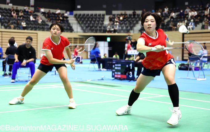 まずダブルスで青森は、東谷悠妃/德永結妃の3年生・2年生ペアが、インターハイ個人ダブルス3位の松本紗季/鎌田虹花に16本、15本で先勝。埼玉との準決勝では敗れたペアだが、得意の攻撃パターンが噛み合って、出だしから勢いに乗った。