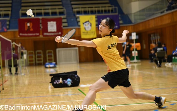 その中で上位に勝ち進んだのは、前回大会3位の今泉明日香(日本体育大)と筑波大1年生の横内美音。また、単複の優勝候補である中出すみれ(龍谷大)と、シングルスでは初の全国ベスト4入りという江見日和菜(北翔大)の4人が準決勝に進む。決勝をかけた争いは、今泉と横内、中出と江見が激突した。