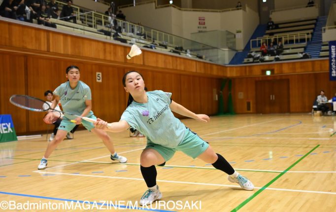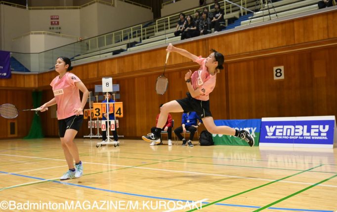 2年前にインカレを制し、前回大会は準優勝の中出すみれ(上写真・奥)/田邉裕美(龍谷大)が、順当に準決勝に進出。その準決勝で対峙したのは、筑波大1年生ペアの玉木亜弥/長廻優茉。玉木は世界ジュニア2連覇&混合ダブルス日本代表で、初戦から2-0で連勝。実力を発揮して準決勝へと勝ち進んできた。