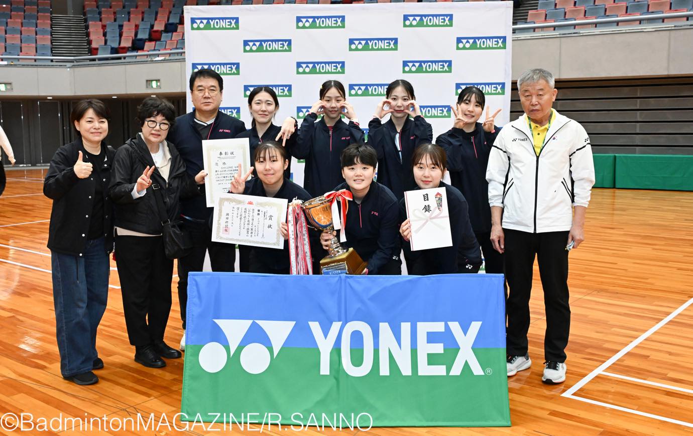 決勝戦の第1ダブルスは、YONEX MULANが第1ゲームを16本で先取。そのままストレート勝利かと思われたが、ひるまず攻め続けるChallenge Koreaが接戦の第2ゲームを奪う。遅れて始まった第2ダブルスは、Challenge Koreaが試合序盤から相手を圧倒。こちらが先に2-0で決着をつけた。その直後に第1ダブルスもクライマックスを迎え、Challenge Koreaがファイナルゲーム21-17で勝利。チームとして2-0で優勝が決まると、選手たちは抱き合って涙を流した。3位決定戦は昨年優勝のYONEXが、大阪バドミントンカレッジの勢いを止めて2-0で勝利した。