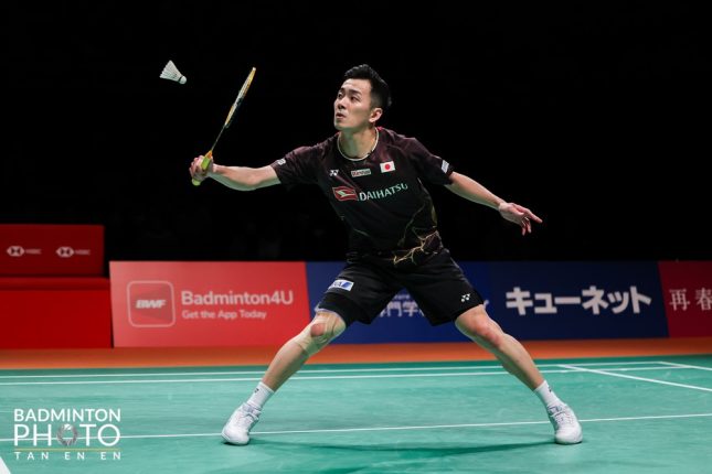 男子シングルスは西本拳太(上写真)と奈良岡功大が準決勝に登場。西本はラクシャ・セン(インド)との勝負となり、第1ゲームは21−19で先制する。第2ゲームは14本で失う展開となったが、ファイナルゲームは5連続得点などで引き離し、21−14で勝利。決勝進出を決めた。