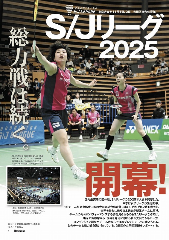 11月1日、2日、国際最高峰の団体戦、S/Jリーグの2025年大会が開幕しました。今年は女子が先行開幕。男子は11月23日の秋田大会で開幕2試合が行なわれ、11月29日、30日の2日間、一宮大会(愛知県一宮市)で男子全12チームが集います。