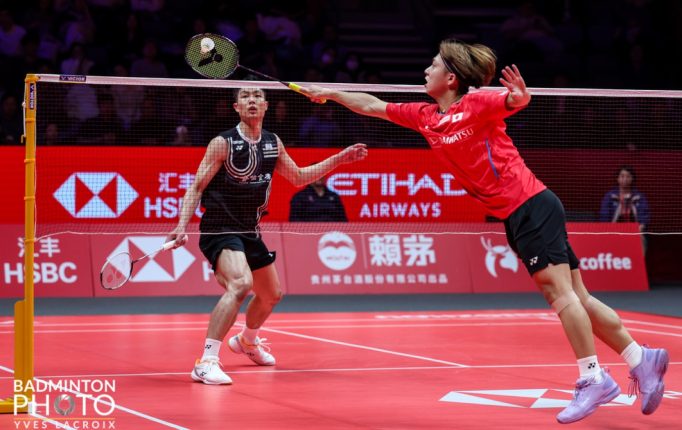 奈良岡功大(日本/1勝)②〔21−17、21−18〕0●周天成(台湾/1敗)55分