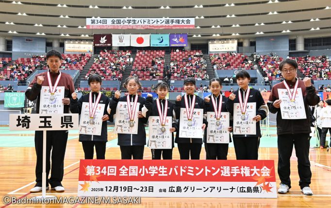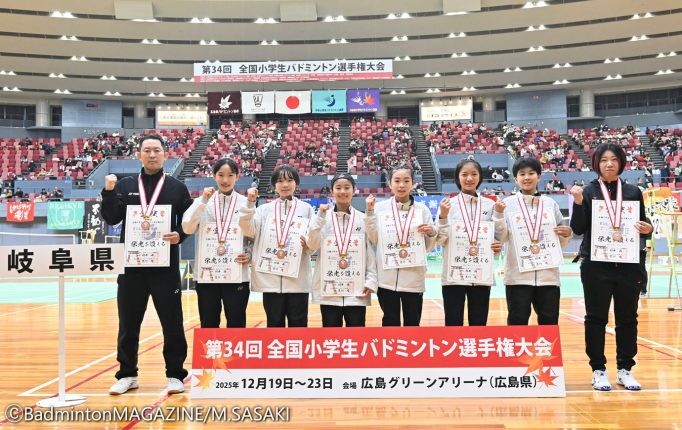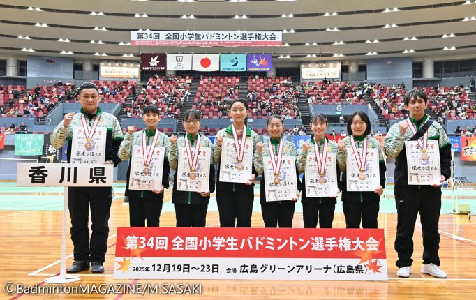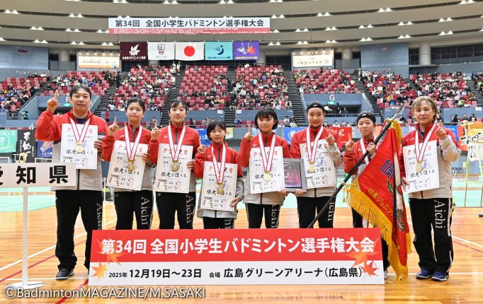 小学生の日本一を決める『第34回全国小学生選手権大会』が12月20日に、広島県立総合体育館(広島グリーンアリーナ)で開幕。競技2日目の21日は、都道府県対抗の男女団体戦(1複2単)の準々決勝から決勝が行なわれた。ここでは、女子団体のダイジェストをお伝えする。