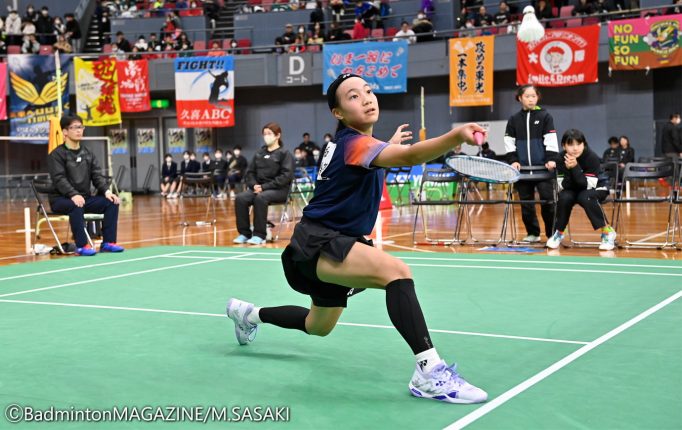準決勝。埼玉と岐阜のマッチアップは、埼玉が2−0で勝利。複の髙橋麗/秋庭心虹は、19オールから突き放されて第1ゲームを落としながら、気持ちを引かずに反撃し、その後は14本、15本で見事に逆転勝利。第1単の三堀爾娘は、小気味よいフットワークからの思いきったショットで、16本、14本のストレート勝ちを収めた。