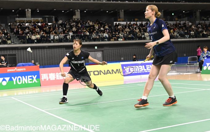 ワールドツアーファイナルズ準優勝の福島由紀(上写真・左)/松本麻佑(岐阜Bluvic/ほねごり相模原)は、2回戦から登場。松本は混合ダブルスにも出場しており、ファイナルゲーム75分の試合を経てのプレーとなった。