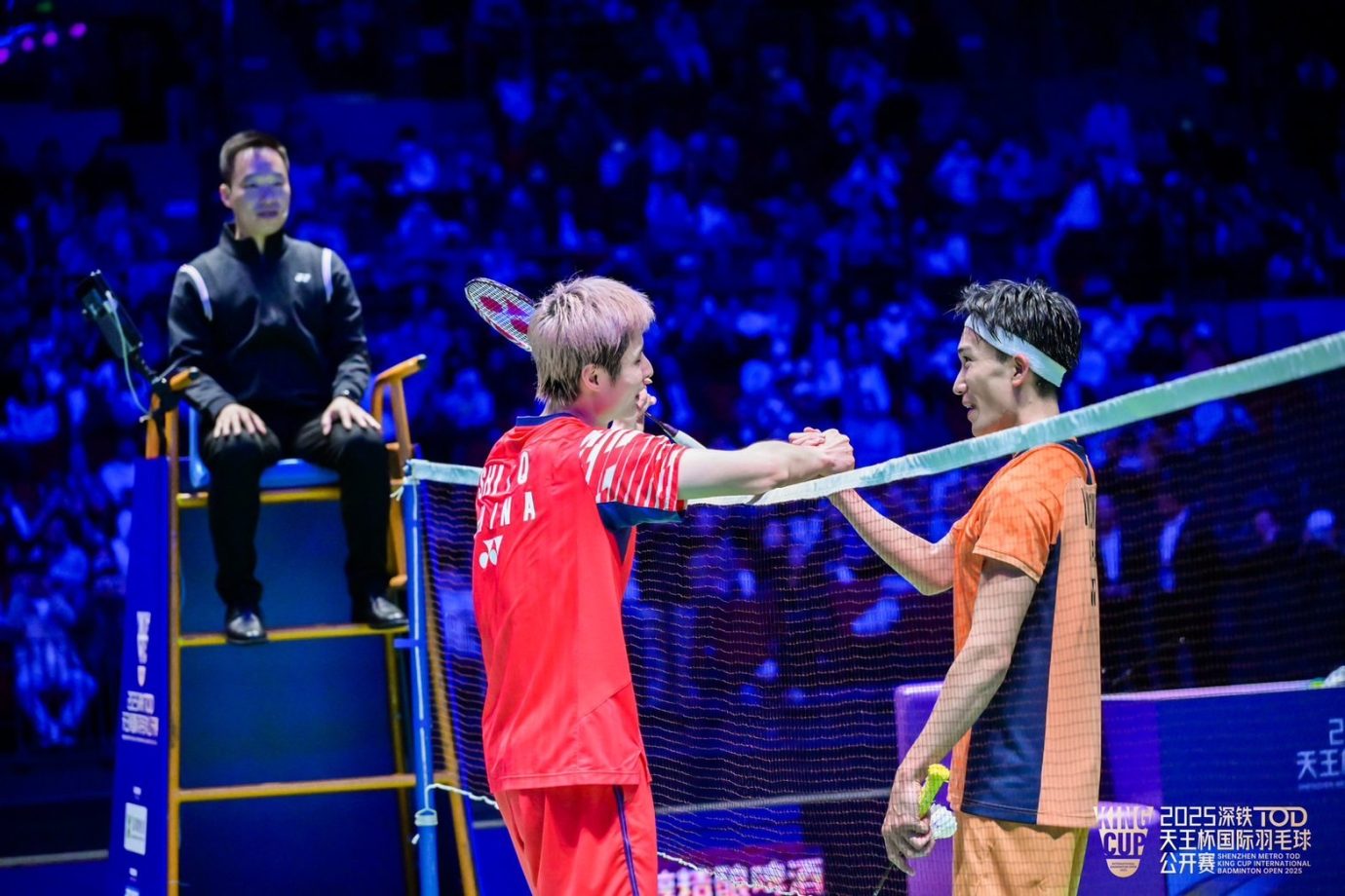 日本時間で12月26日の夜に行なわれた試合は、演出も華々しく、中国のバドミントンファンで大いに盛り上がり、久々の国際大会でのプレーとなった桃田には、地元・中国の石宇奇以上に大きな声援が送られた。桃田は、試合序盤から現役時代に彼を世界一へと導いたレシーブ力、精密なコントロール、ネット前の卓越したスキルを発揮。ハイレベルなプレーで、会場を沸かせた。