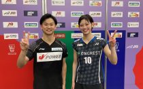 実は、選手よりもこの旗の方が、バドミントン・マガジン出場(掲載)回数が多いので少し歯がゆいですが(プレー写真の背景に写る場合が意外と多い)、その場所を選んで張った選手は「気が利く」といっています。さらに、この旗の前で試合をしている写真が載ることも稀にあり、そのときの喜びは倍増します→「気が合う」でしょうか。
