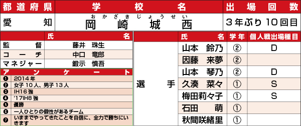 【高校選抜2020/女子】岡崎城西高校<愛知>