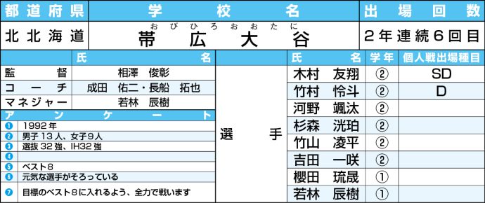 【高校選抜2026】男子:帯広大谷<北北海道>