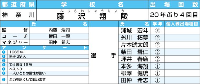 【高校選抜2026】男子:藤沢翔陵<神奈川>