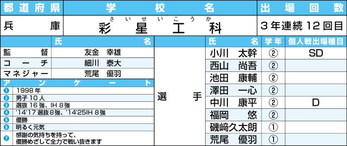【高校選抜2026】男子:彩星工科<兵庫>