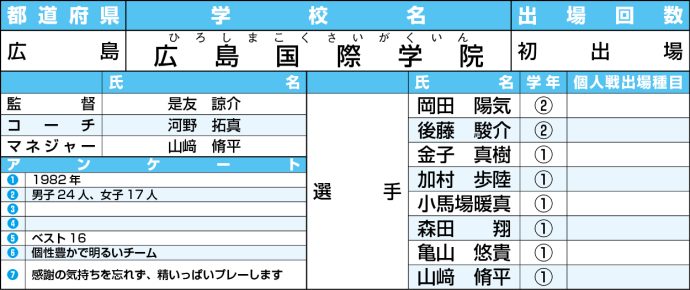 【高校選抜2026】男子:広島国際学院<広島>