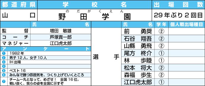 【高校選抜2026】男子:野田学園<山口>