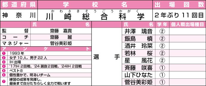 【高校選抜2026】女子:川崎総合科学<神奈川>