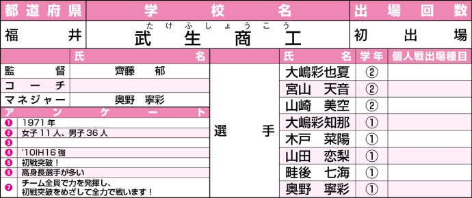 【高校選抜2026】女子:武生商工<福井>